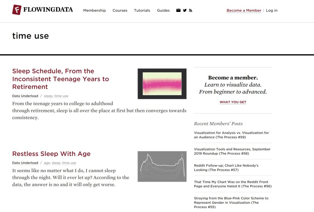Flowing Data explores how statisticians, designers, data scientists, and others use analysis, visualisation, and exploration to understand data. This particular link is relevant to time use which is what we are exploring in this unit.